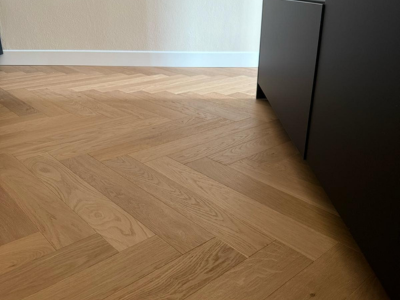 Il parquet in frassino ha la particolarità di avere una presenza limitata di nodi conferendo al pavimento un aspetto moderno e raffinato. Si distingue per la sua durezza, resistenza agli urti e stabilità, garantendo una lunga durata nel tempo. La tinteggiatura del frassino evidenzia la delicata venatura, conferendo al parquet un tocco di eleganza e naturalezza.